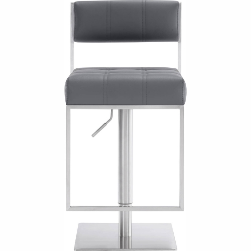 Armen Living Michele Adjustable Height Swivel Bar Stool in Brushed Stainless Finish & Grey Leatherette