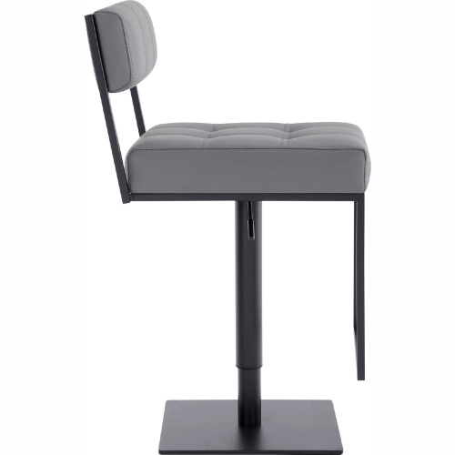 Armen Living Michele Adjustable Height Swivel Bar Stool in Black Metal & Grey Leatherette
