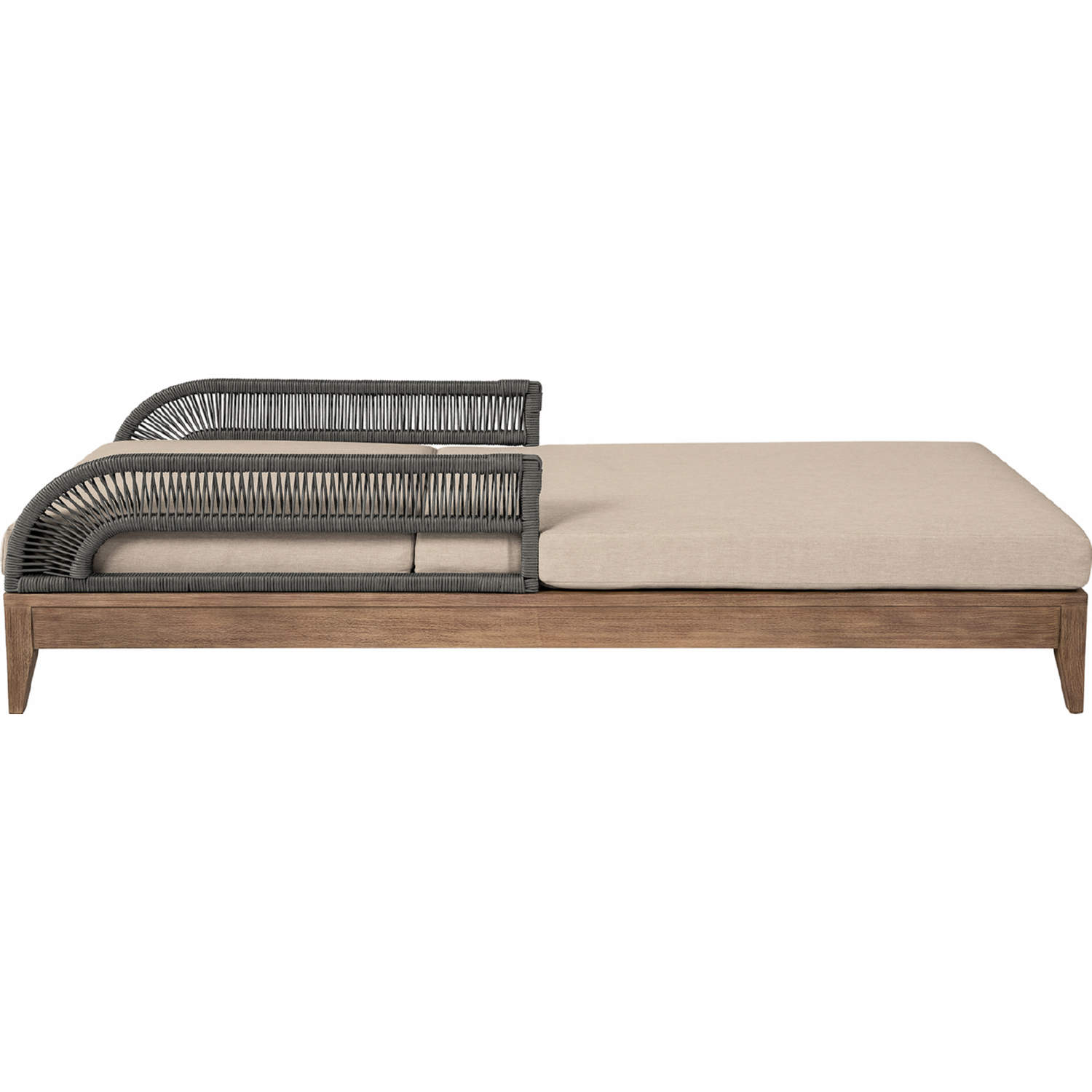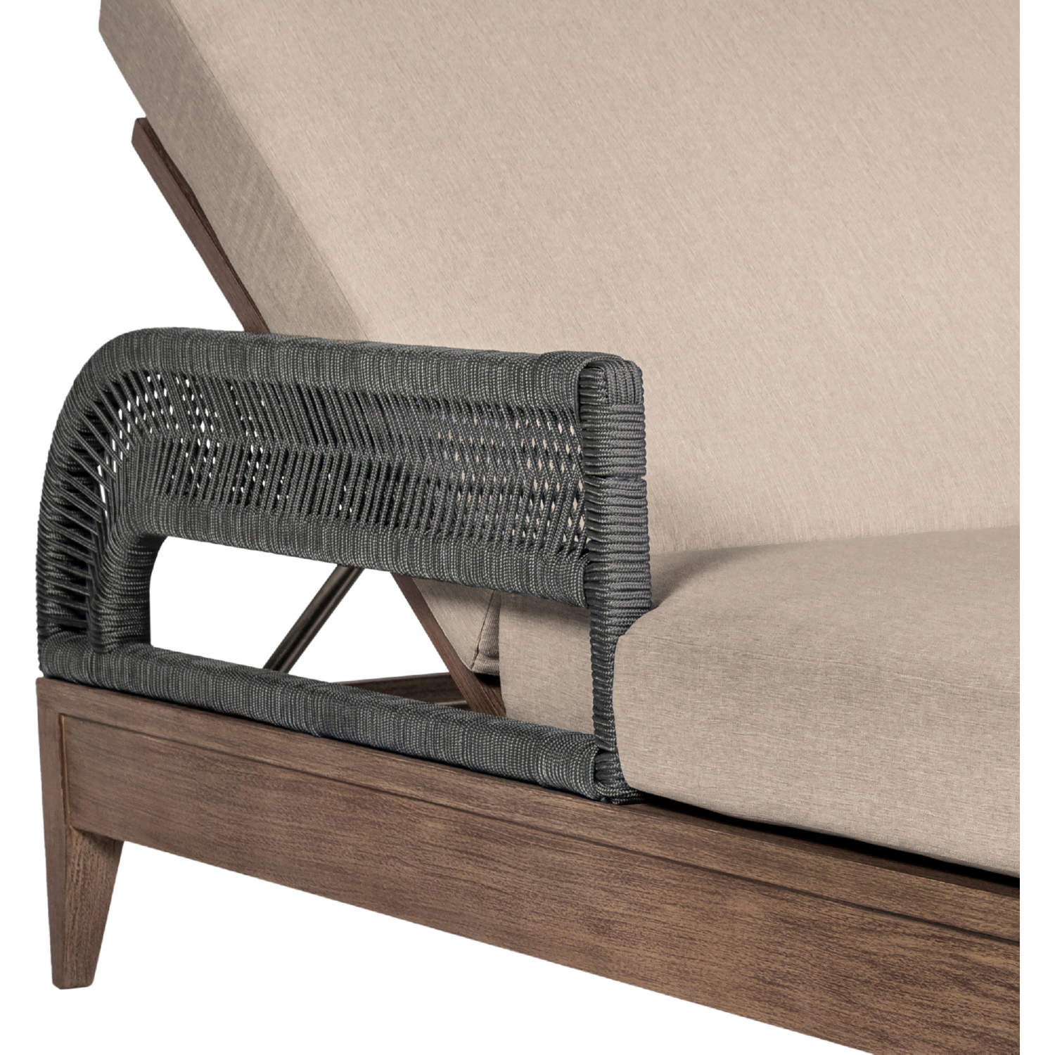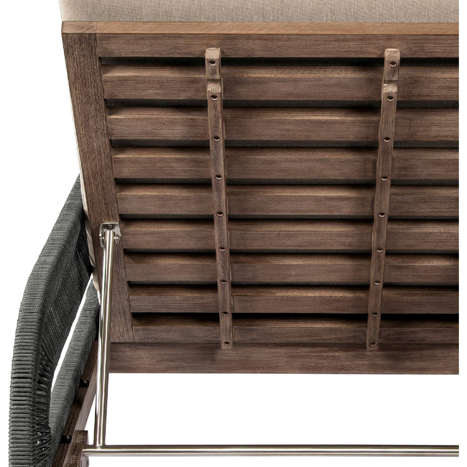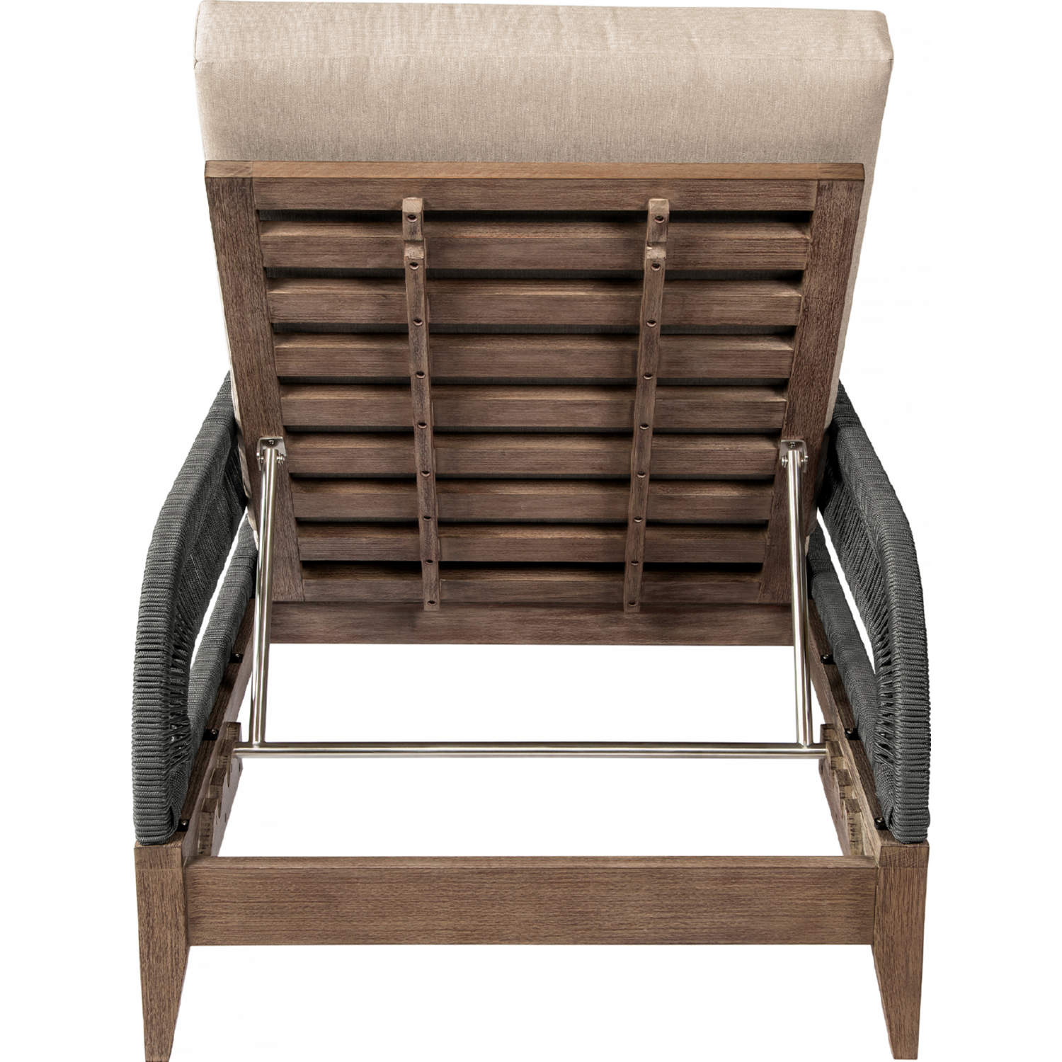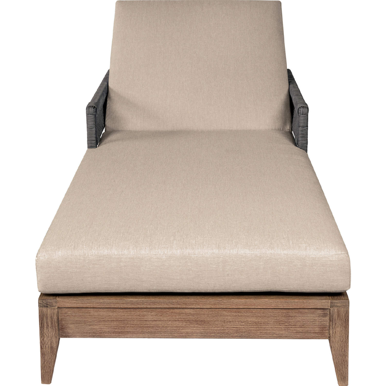 Armen Living Orbit Outdoor Chaise Lounge Chair in Weathered Eucalyptus Wood, Gray Rope & Taupe Olefin Fabric