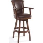 Armen Living Raleigh Arm 26" Swivel Counter Stool in Chestnut Finish & Kahlua Leatherette (Set of 2)