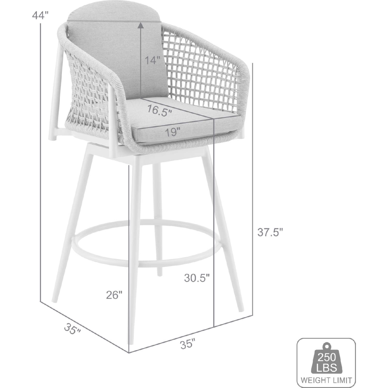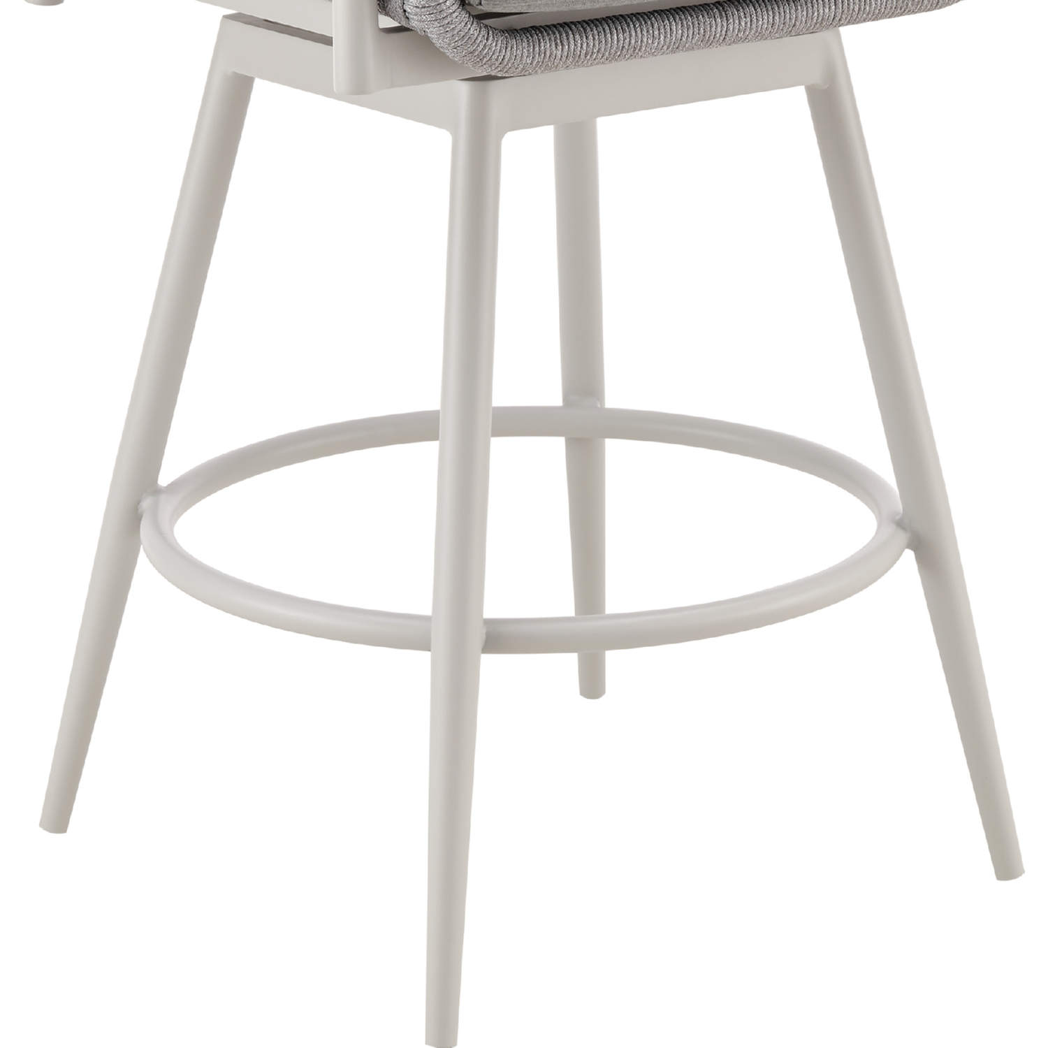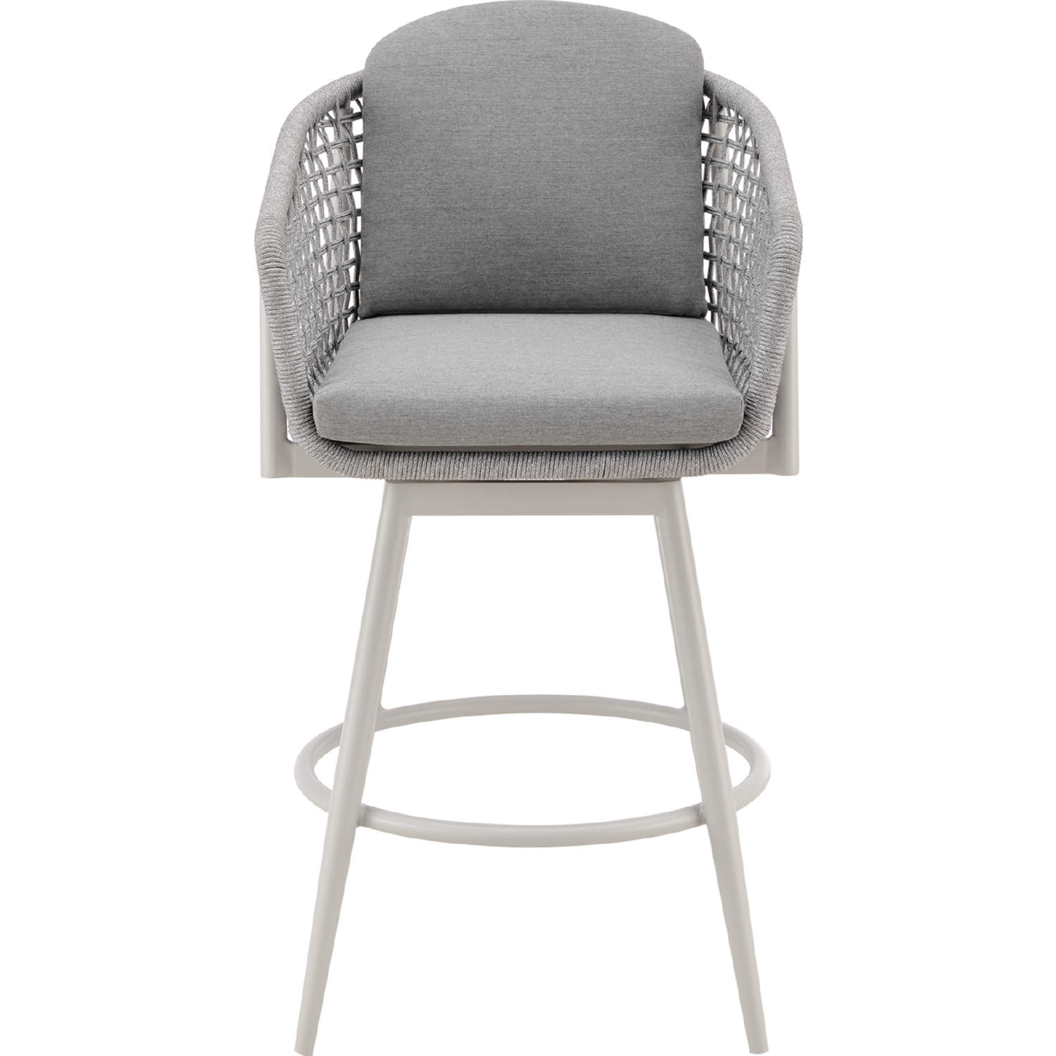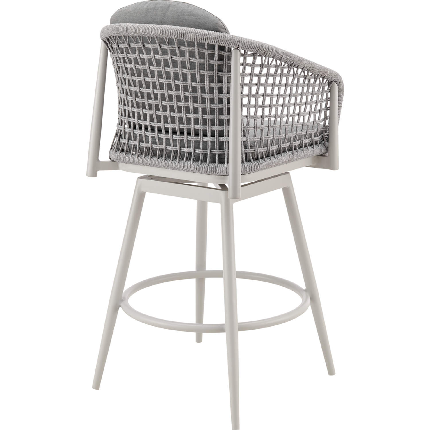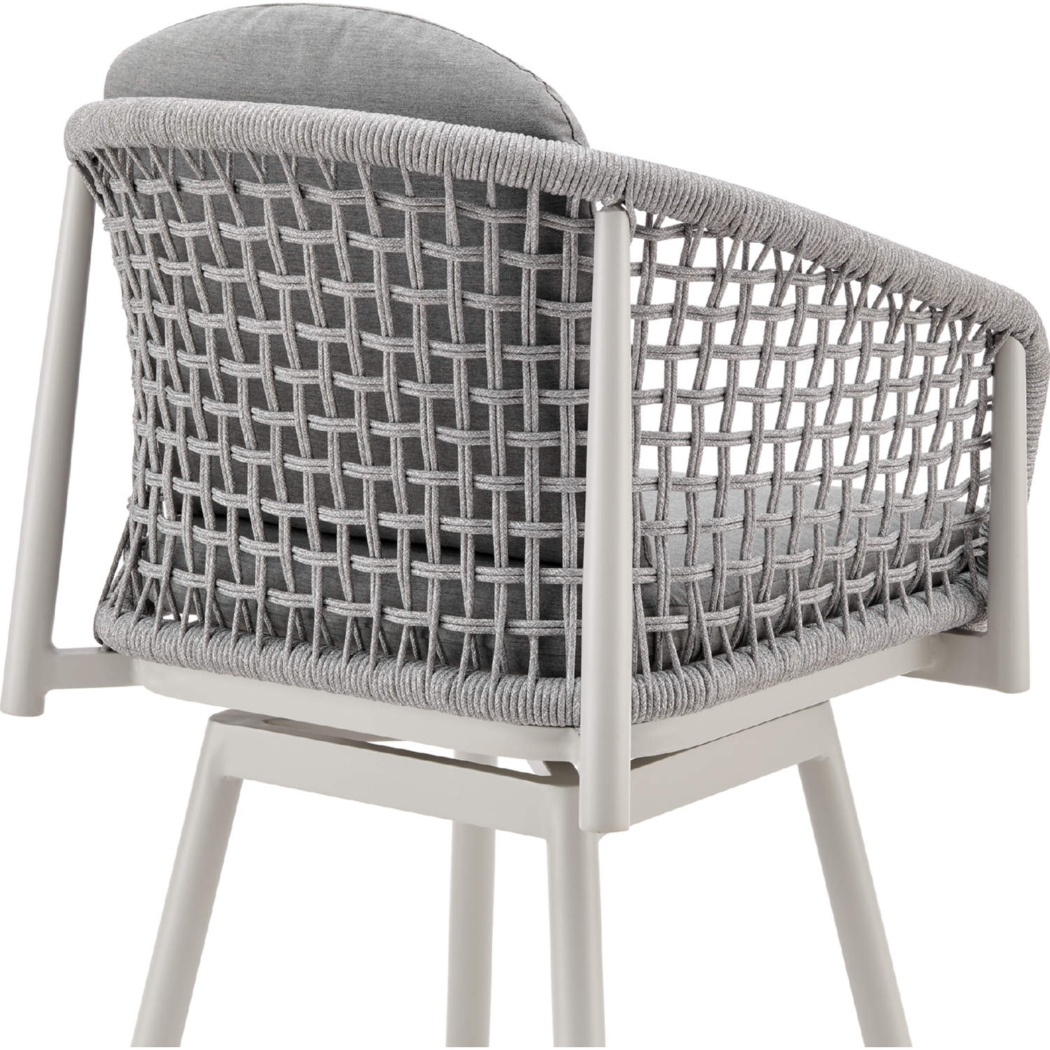 Armen Living LCRHBALGRY30 Rhodes Outdoor Swivel 30" Bar Stool Aluminum, Light Gray Rope & Fabric (Set of 2)