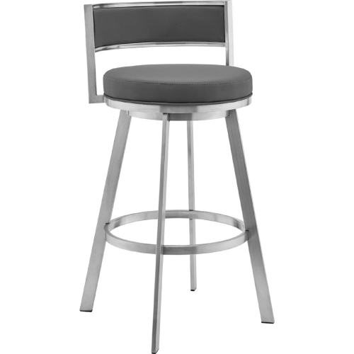 Armen Living Roman 26" Swivel Counter Stool in Gray Leatherette & Brushed Stainless Steel