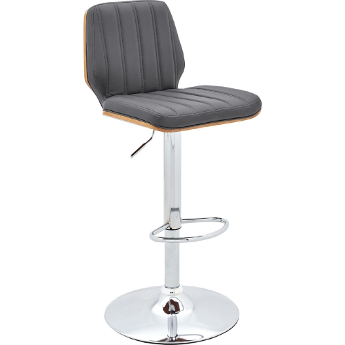 Armen Living Sabine Adjustable Swivel Gray Leatherette, Walnut Back & Chrome