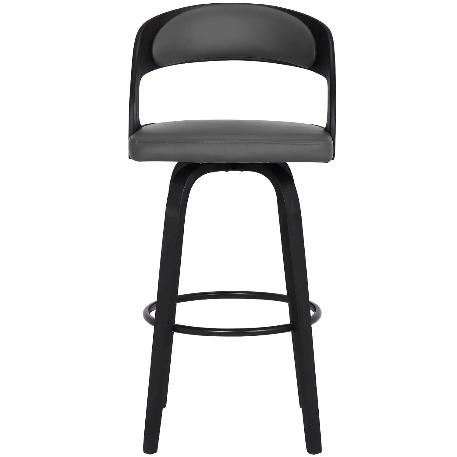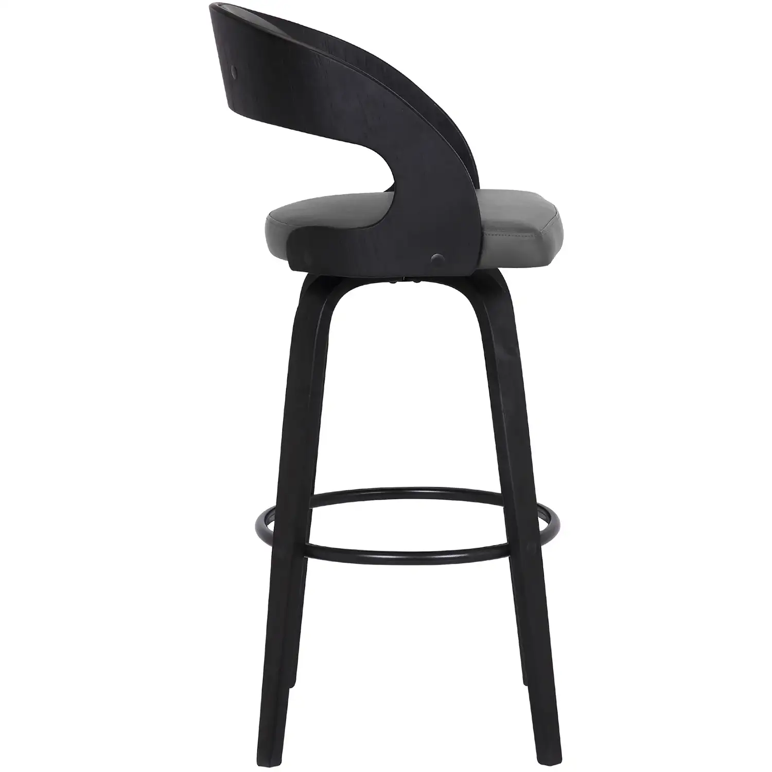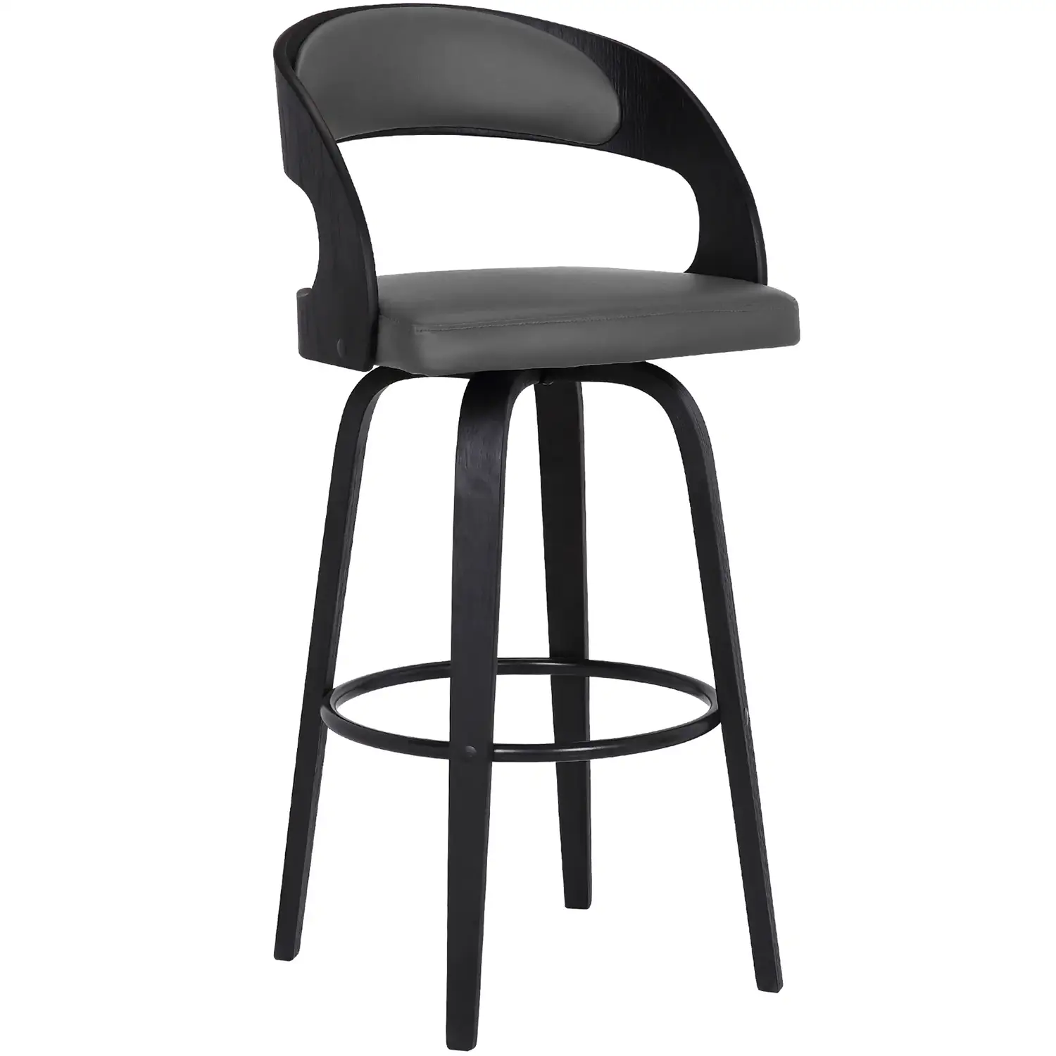 Armen Living LCSHBAGRBL30 Shelly 30" Swivel Bar Stool Black Brush Wood & Grey Leatherette