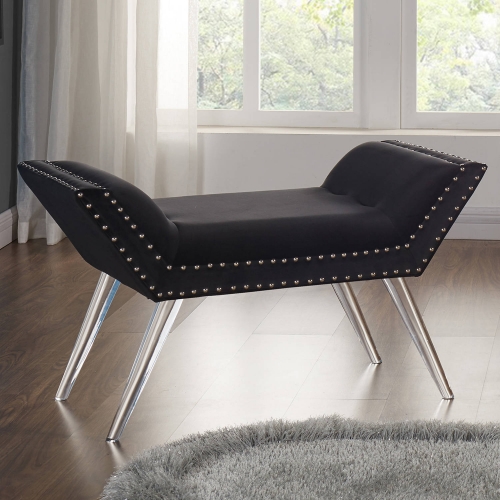 Armen Living LCSIBEBL Silas Bench Black Tufted Velvet w/ Nailhead on Acrylic Legs