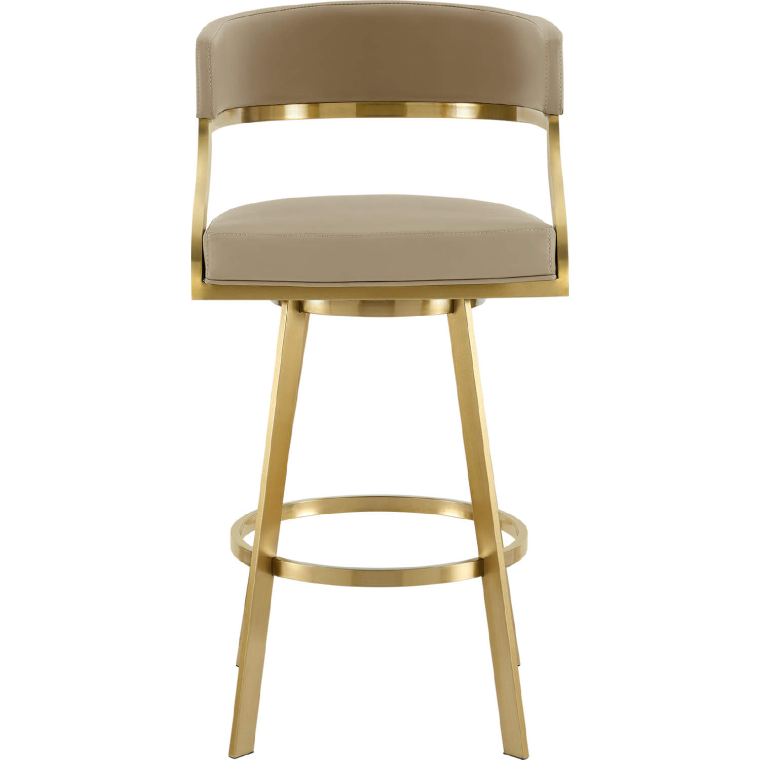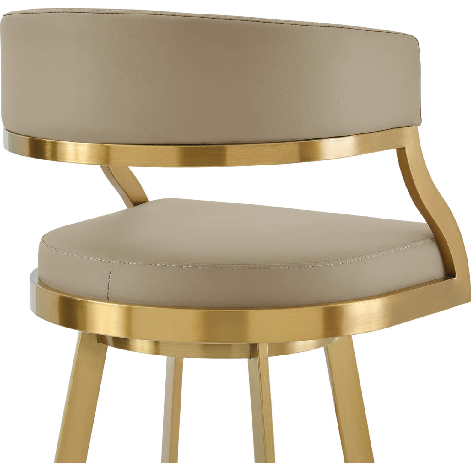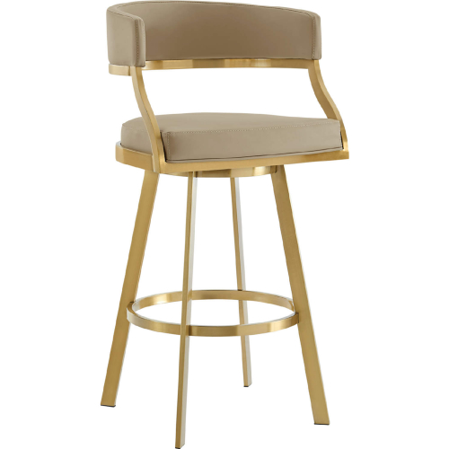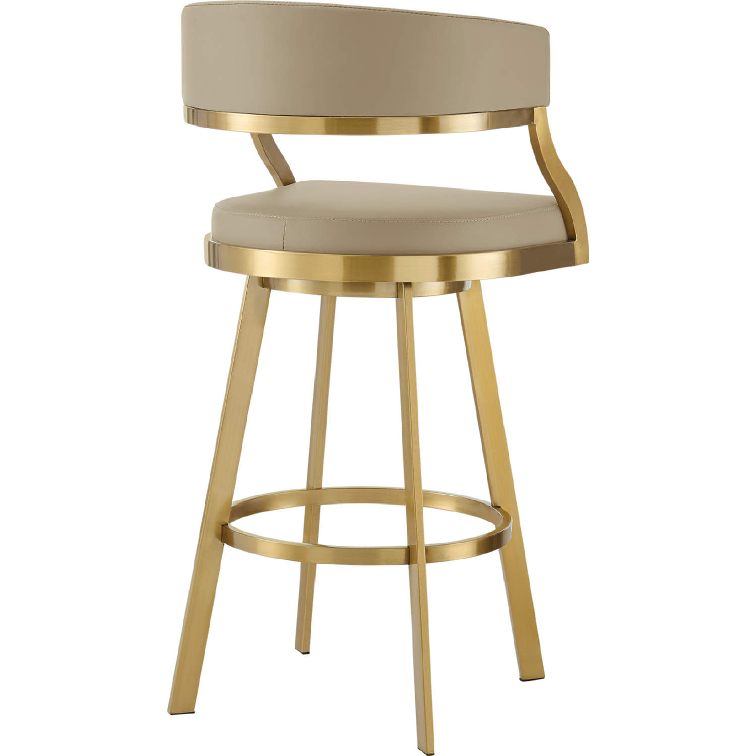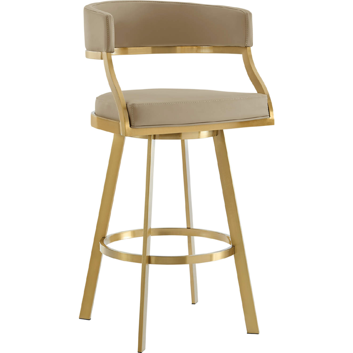 Armen Living LCSNSWBABGLLSA30 Saturn 30" Swivel Bar Stool Gold Brushed Stainless Steel Light Sand Leatherette