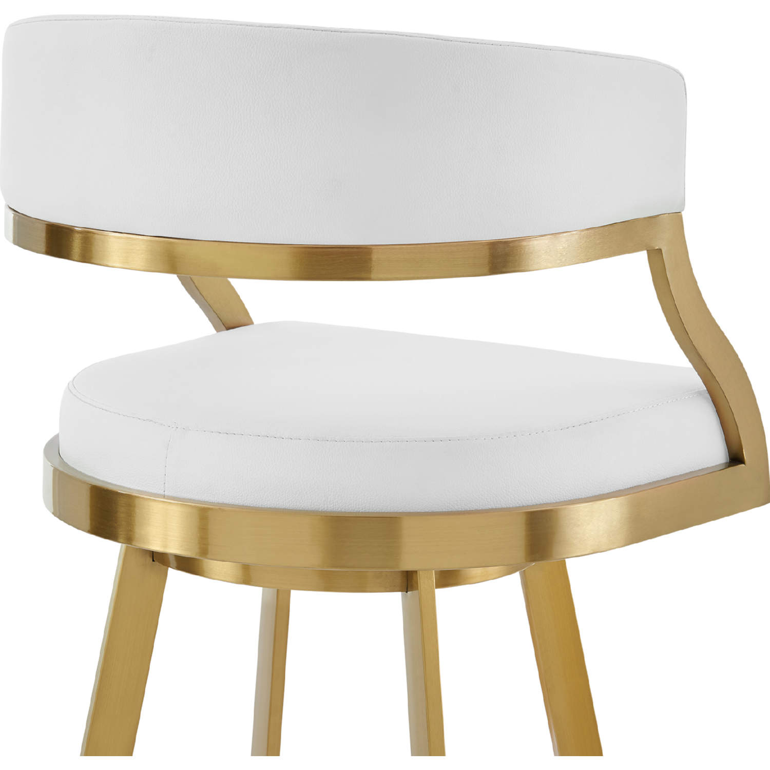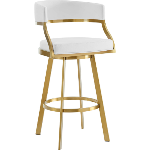 Armen Living LCSNSWBABGLWH26 Saturn 26" Swivel Counter Stool Gold Brushed Stainless Steel White Leatherette
