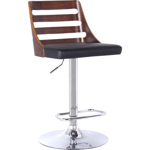 Armen Living LCSTBAWABL Storm Adjustable Height Bar Stool w/ Walnut Wood Back & Black Leatherette Seat on Chrome