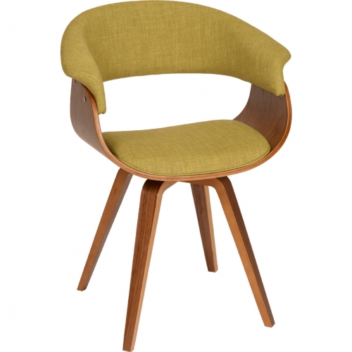 Armen Living Summer Modern Chair in Green Fabric & Walnut Wood