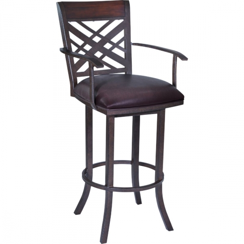 Armen Living LCTA26ARBABR Tahiti 26" Arm Counter Stool Auburn Bay Finish w/ Brown Leatherette