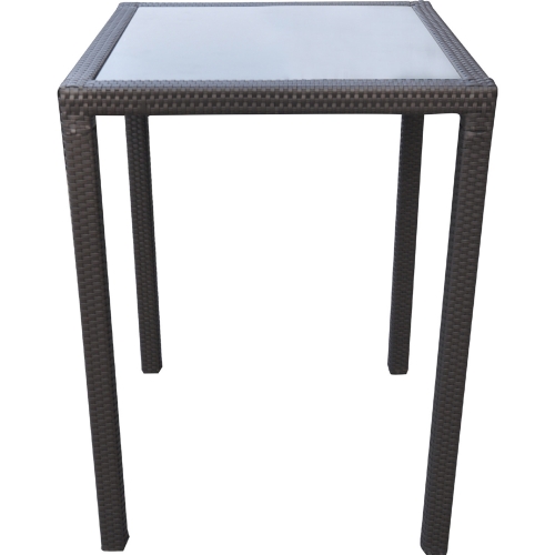 Armen Living LCTRBTBE Tropez Outdoor Poly Wicker Bar Table Brown w/ Black Glass Top