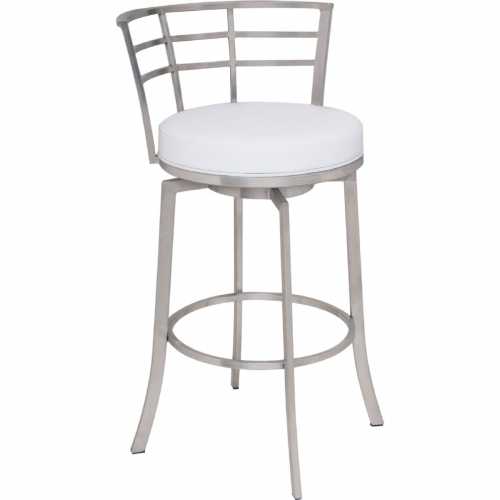 Armen Living LCVI26BAWH Viper 26" Counter Stool Brushed Stainless Steel Finish w/ White Leatherette