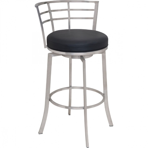 Armen Living LCVI30BABLK Viper 30" Bar Stool Brushed Stainless Steel Finish w/ Black Leatherette