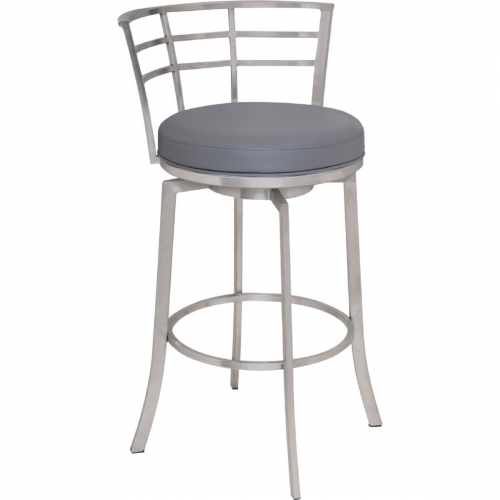 Armen Living LCVI30BAGR Viper 30" Bar Stool Brushed Stainless Steel Finish w/ Grey Leatherette