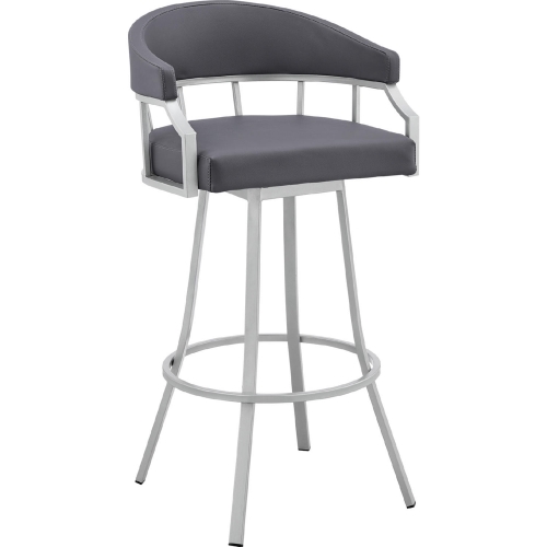 Armen Living Valerie 30" Swivel Bar Stool in Slate Grey Leatherette & Silver Metal