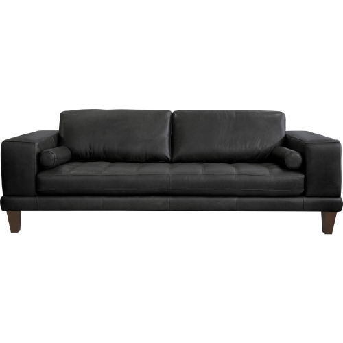 Armen Living LCWY3BLACK Wynne Sofa Black Leather on Brown Wood Legs