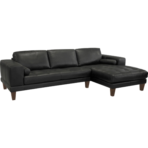 Armen Living Wynne Sectional Sofa in Black Leather on Brown Wood Legs