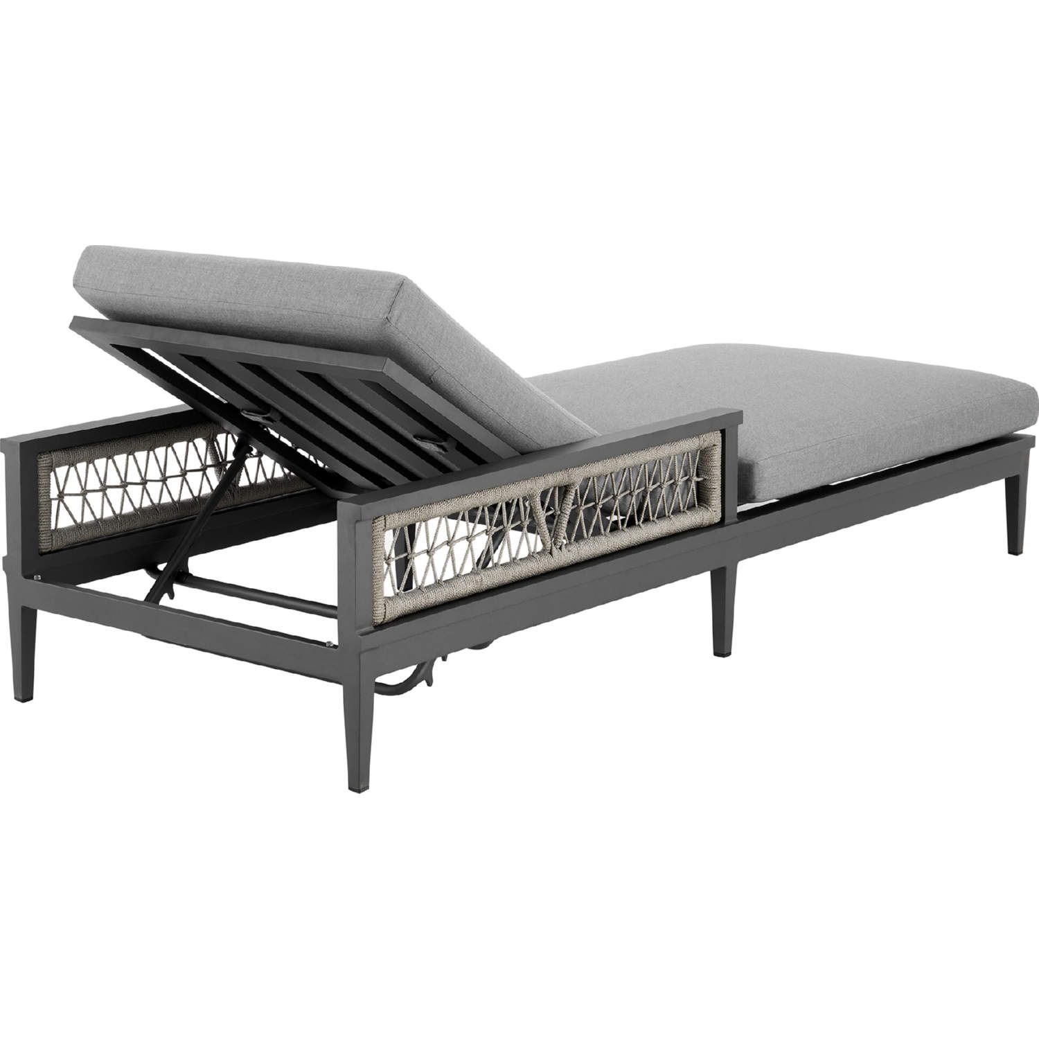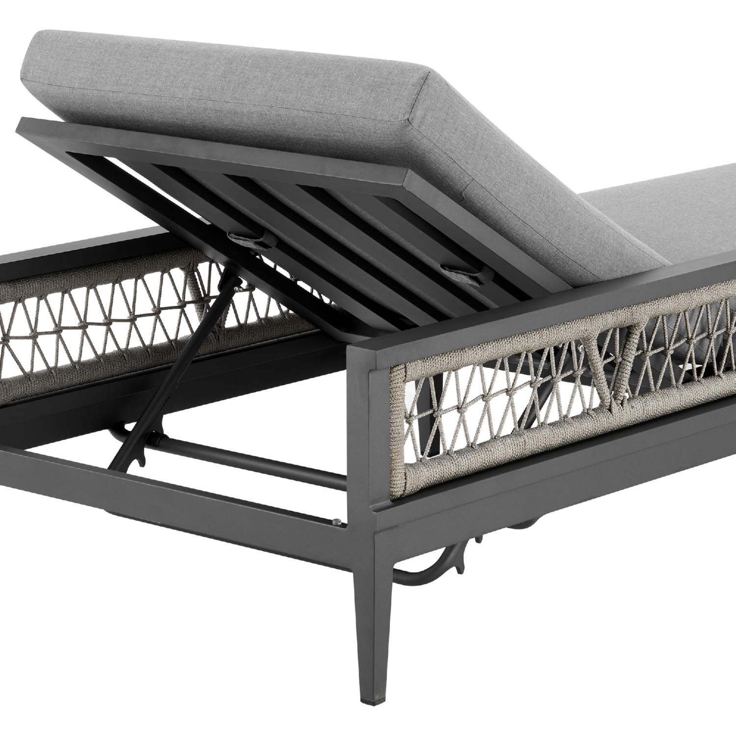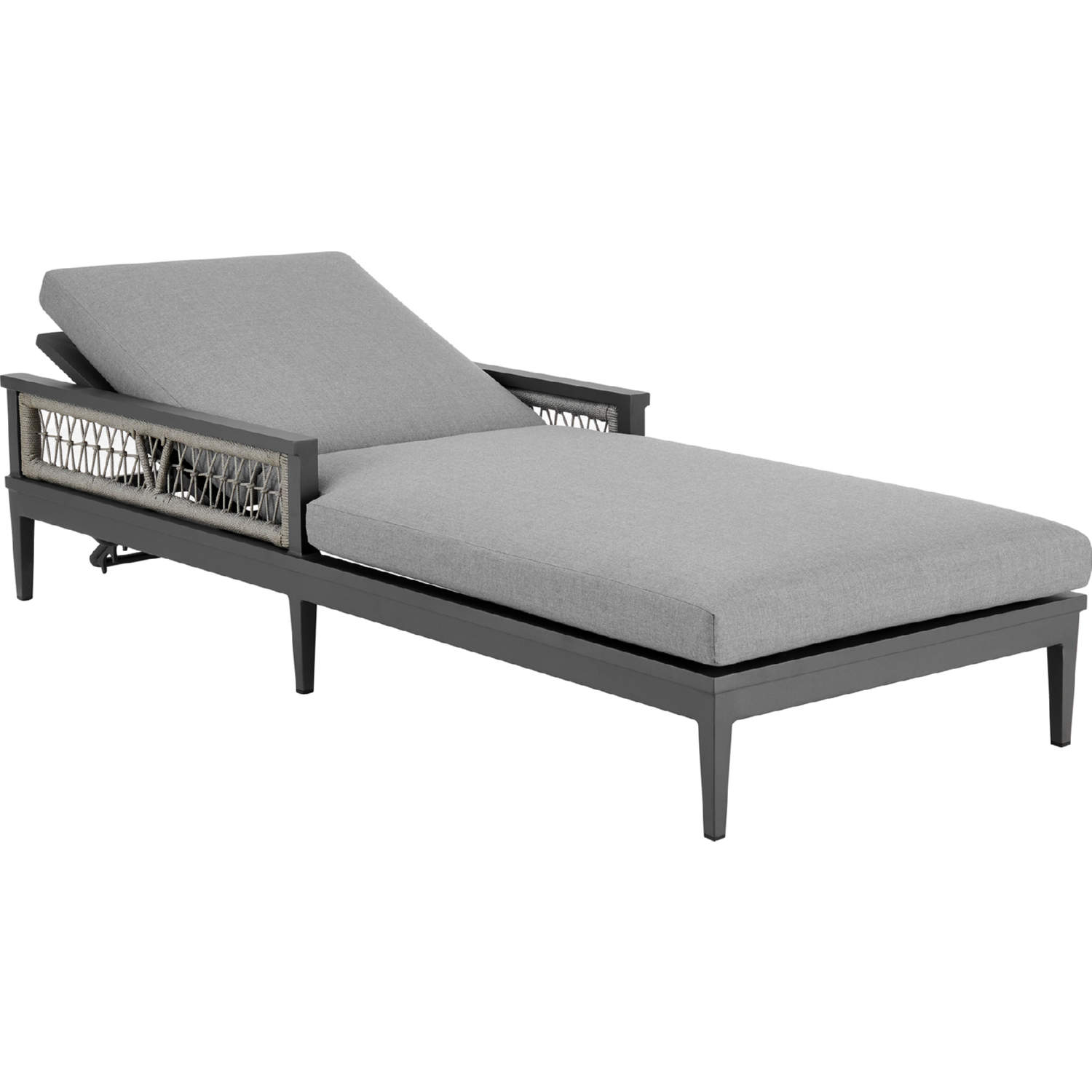 Armen Living LCZELOGRY Zella Outdoor Chaise Lounge Chair Aluminum, Gray Rope & Earl Gray Fabric