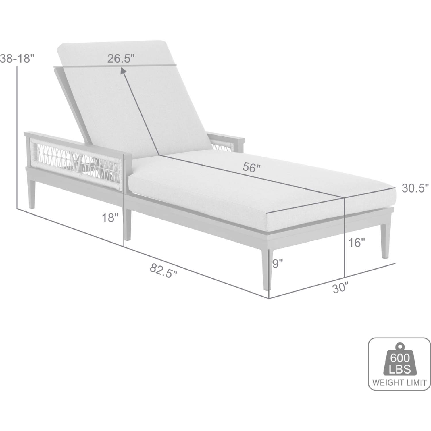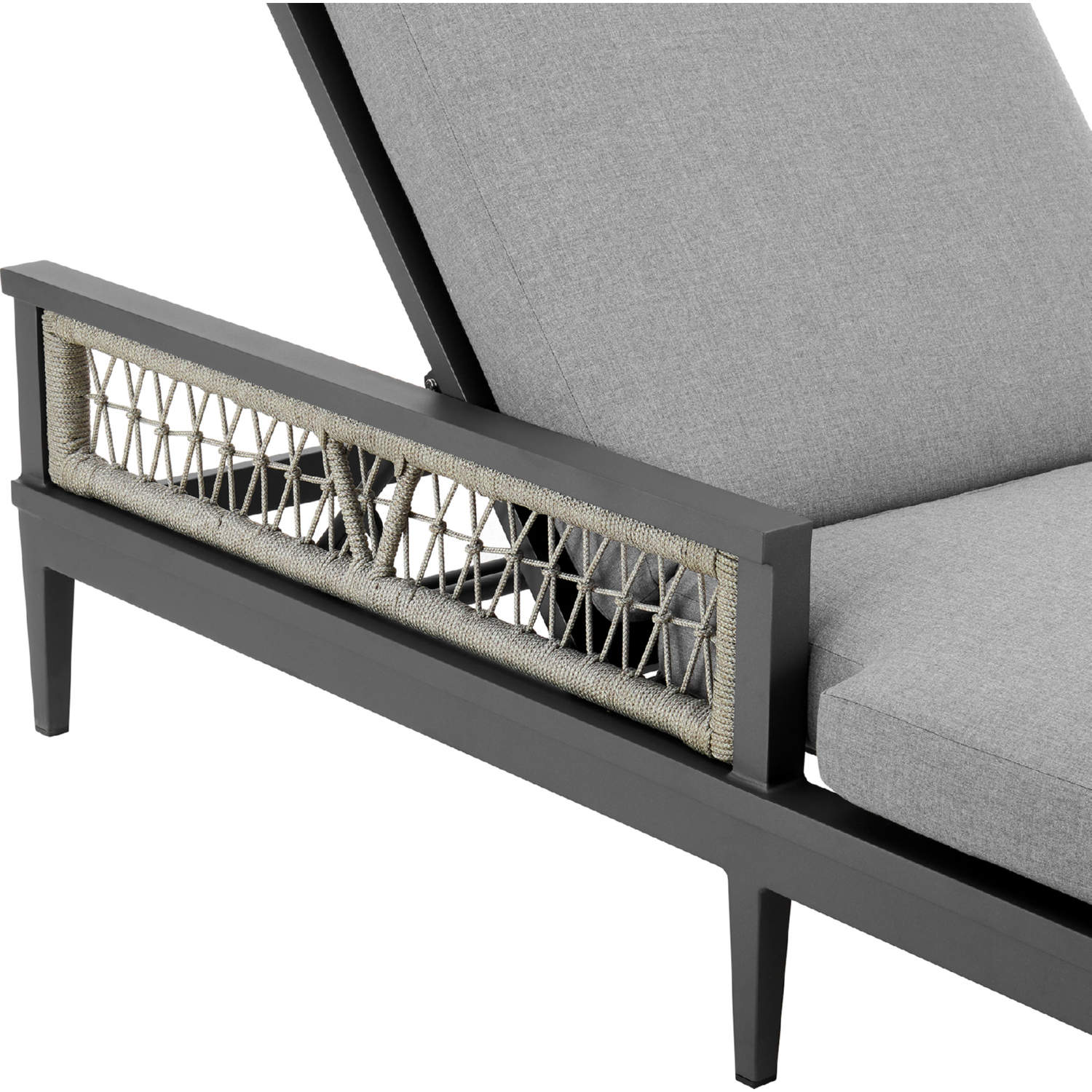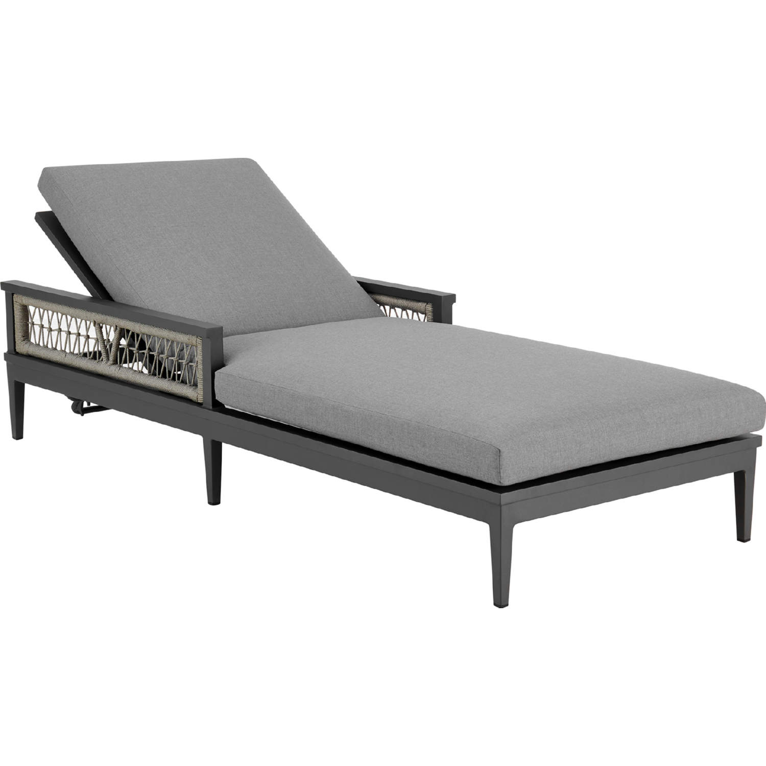 Armen Living LCZELOGRY Zella Outdoor Chaise Lounge Chair Aluminum, Gray Rope & Earl Gray Fabric