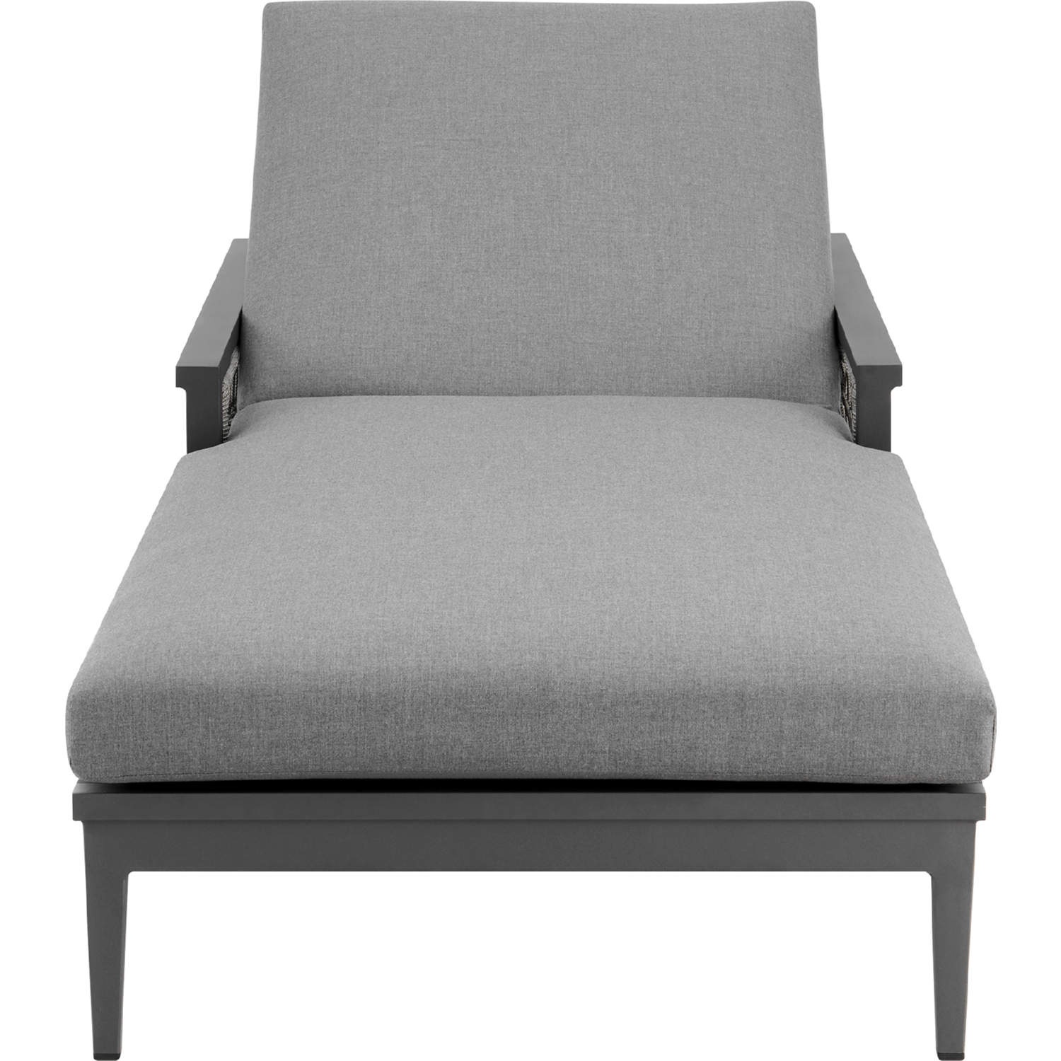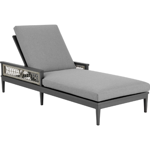 Armen Living Zella Outdoor Chaise Lounge Chair in Aluminum, Gray Rope & Earl Gray Fabric