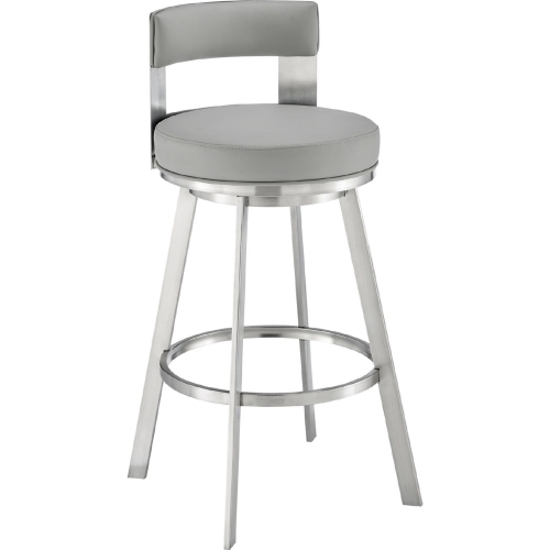 Armen Living Lynof 26" Swivel Counter Stool in Brushed Stainless Steel & Light Grey Leatherette