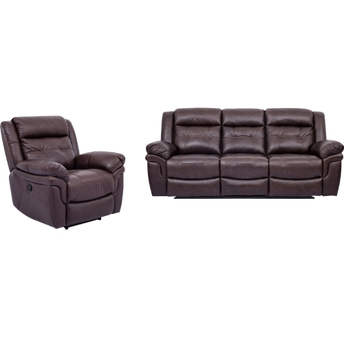 Armen Living SETMCBR2PC Marcel Manual Reclining Sofa & Recliner Set Dark Brown Leather