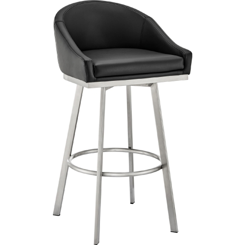 Armen Living 840254335707 Noran 29.5" Swivel Bar Stool Brushed Stainless Steel & Black Leatherette