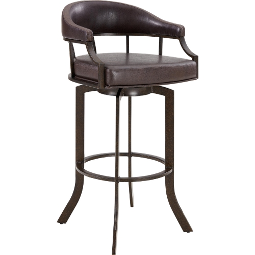 Armen Living 721535743292 Pharaoh 26" Swivel Counter Stool Brown Leatherette & Auburn Metal