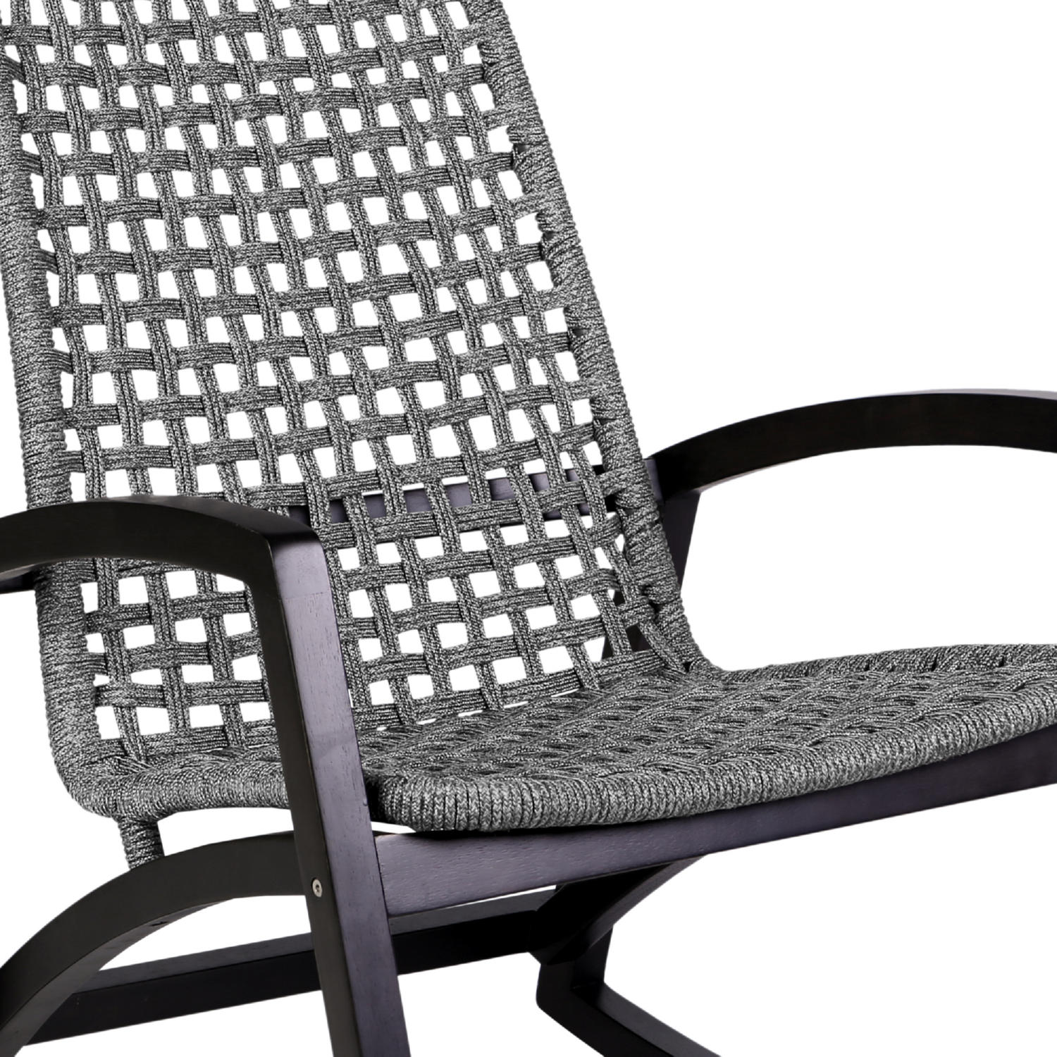 Armen Living 840254332270 Sequoia Outdoor Rocking Chair Dark Eucalyptus & Grey Rope (Set of 2)