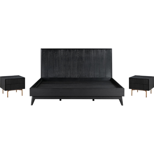 Armen Living Carnaby King 3 Piece Bedroom Set in Black Brushed Oak & Bronze