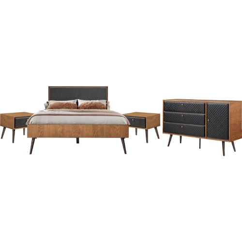 Armen Living SETCOBDQN4B Coco 4 Piece Queen Bedroom Set Rustic Oak & Black Leatherette