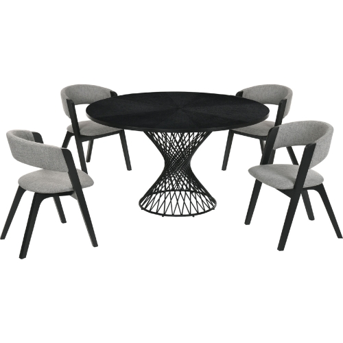 Armen Living Cirque Rowan 5 Piece Dining Set in Grey, Black Wood & Metal