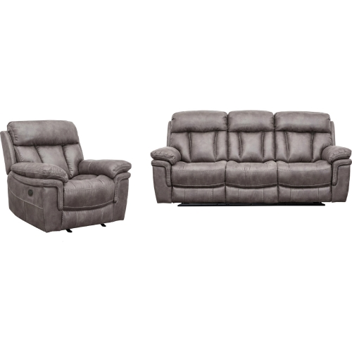 Armen Living Estelle Power Reclining Sofa & Recliner Set in Gunmetal Grey Fabric