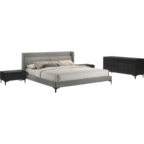 Armen Living SETLEBDCHKG4B Legend 4 Piece King Bedroom Set Gray Fabric King & Black Metal