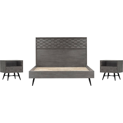 Armen Living SETMKBDKG3A Makena 3 Piece King Bedroom Set Grey Acacia Wood & Black Metal