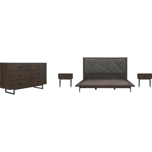 Armen Living Marquis 4 Piece King Bedroom Set in Smoke Oak, Grey Leatherette & Black
