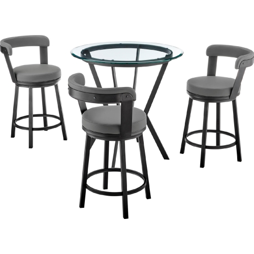Armen Living SETNMBYGRBL4 Naomi & Bryant 4 Piece Counter Dining Set Grey Leatherette & Black