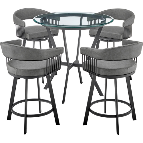 Armen Living SETNMCHGRBL5 Naomi & Chelsea 5 Piece Counter Dining Set Grey Leatherette & Black