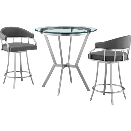 Armen Living SETNMVLGRBS3 Naomi & Valerie 3 PC Counter Dining Set Grey Leatherette & Steel