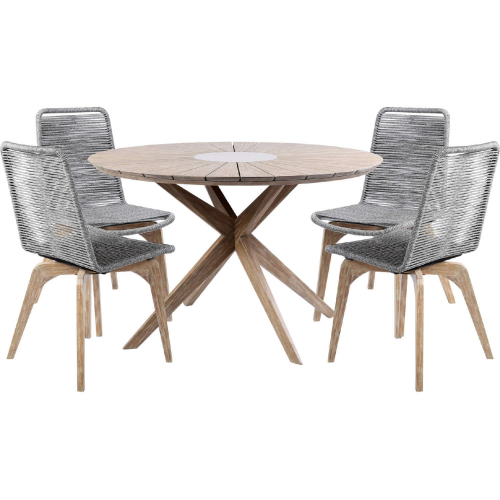 Armen Living SETOADILT5B Oasis & Island Outdoor 5 Piece Dining Set Light Wood, Gray Stone & Gray Rope