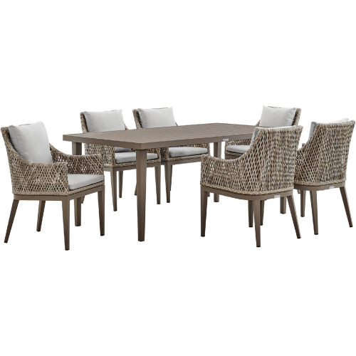 Armen Living SETODGDDIGR7 Grenada 7 Piece Outdoor Dining Set Wicker, Gray Aluminum & Fabric