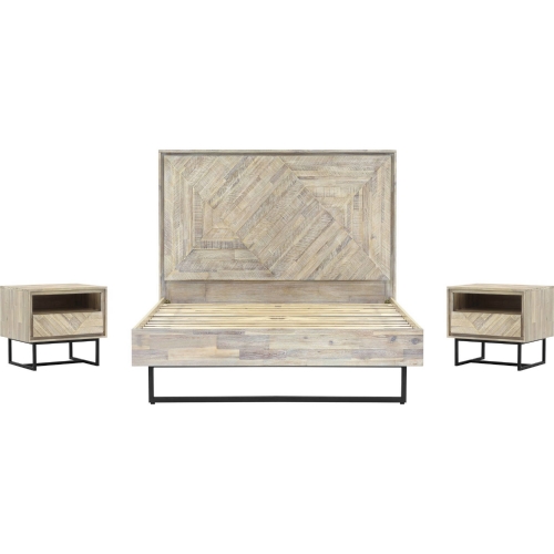 Armen Living SETPEBDQN3A Peridot 3 Piece Queen Bedroom Set Natural Acacia & Black Metal