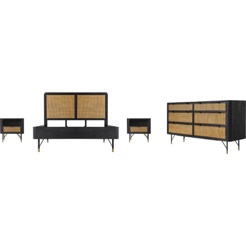 Armen Living SETSRBDQN4A Saratoga 4 Piece Queen Bedroom Set Black Acacia Wood & Rattan