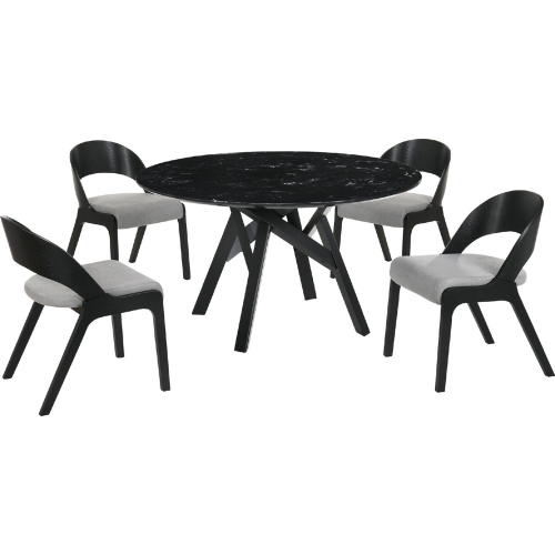 Armen Living Venus & Polly 5 PC Dining Set in Black Marble Look, Grey Fabric & Black