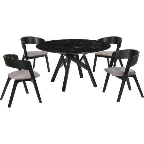 Armen Living Venus & Jackie 5 PC Dining Set in Black Marble Look, Brown Fabric & Black