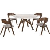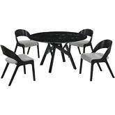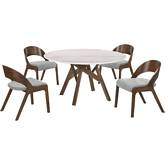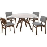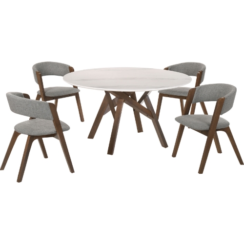 Armen Living Venus & Rowan 5 PC Dining Set in White Marble Look, Grey Fabric & Walnut