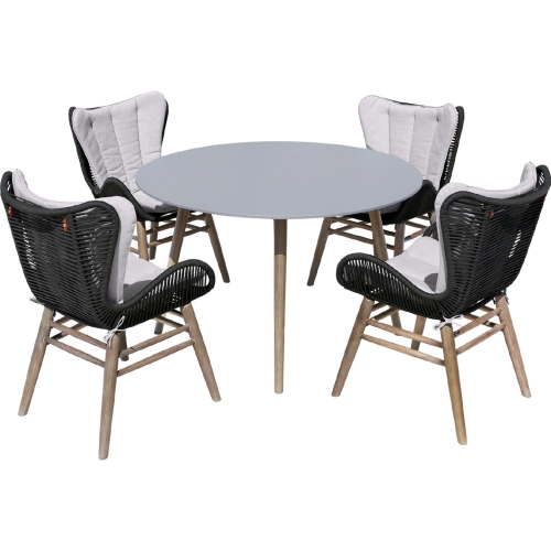 Armen Living Sydney & Fanny 5 Pc Outdoor Dining Set in Light Wood, Charcoal Rope & Grey Fabric