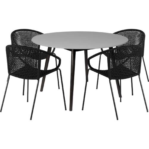 Armen Living Sydney & Snack 5 Piece Outdoor Dining Set in Black Eucalyptus & Black Rope