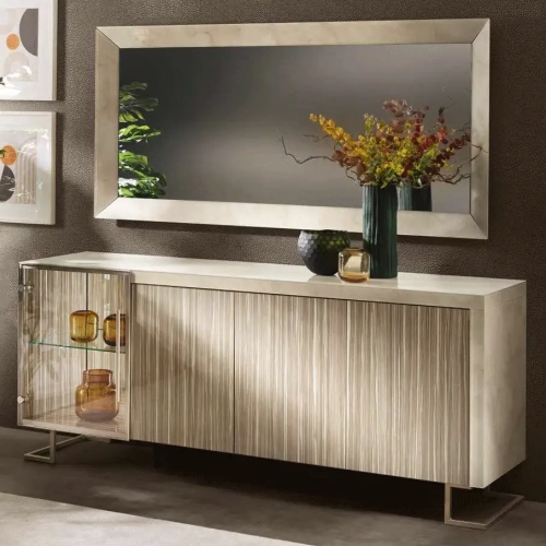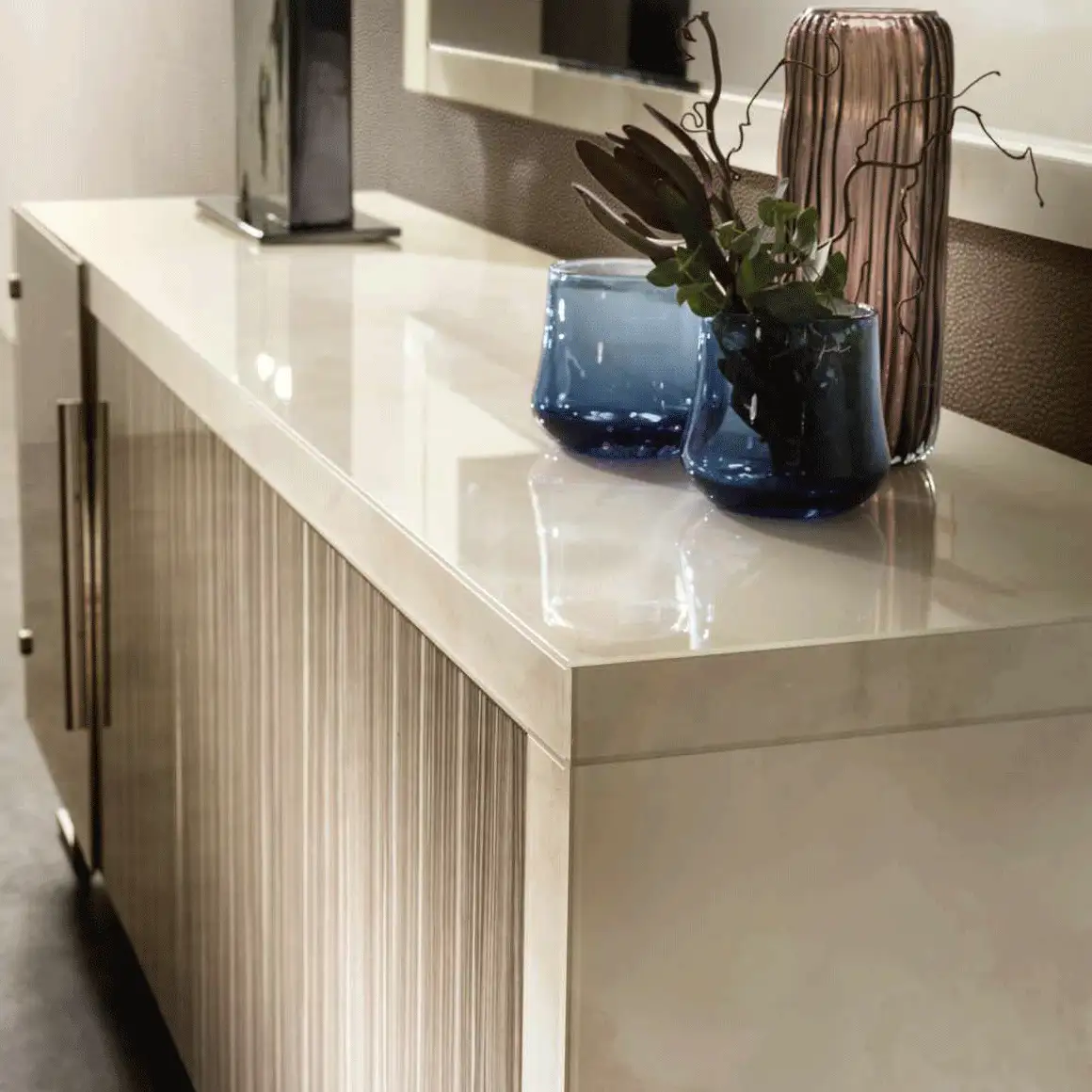 Arredoclassic Italy LUCEBUFFET Luce 4 Door Buffet in Gloss Beige Gloss Wood Glass