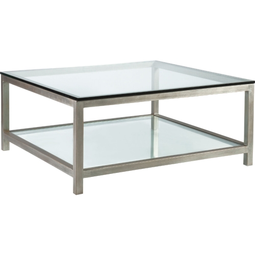 Artistica Home 2013-947-46 Per Se Square Cocktail Table Antique Silver Metal Glass